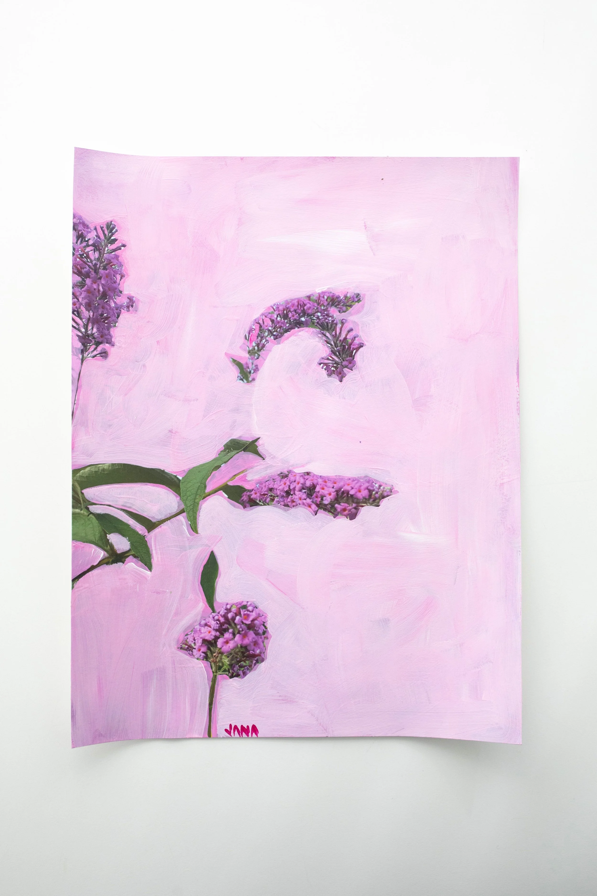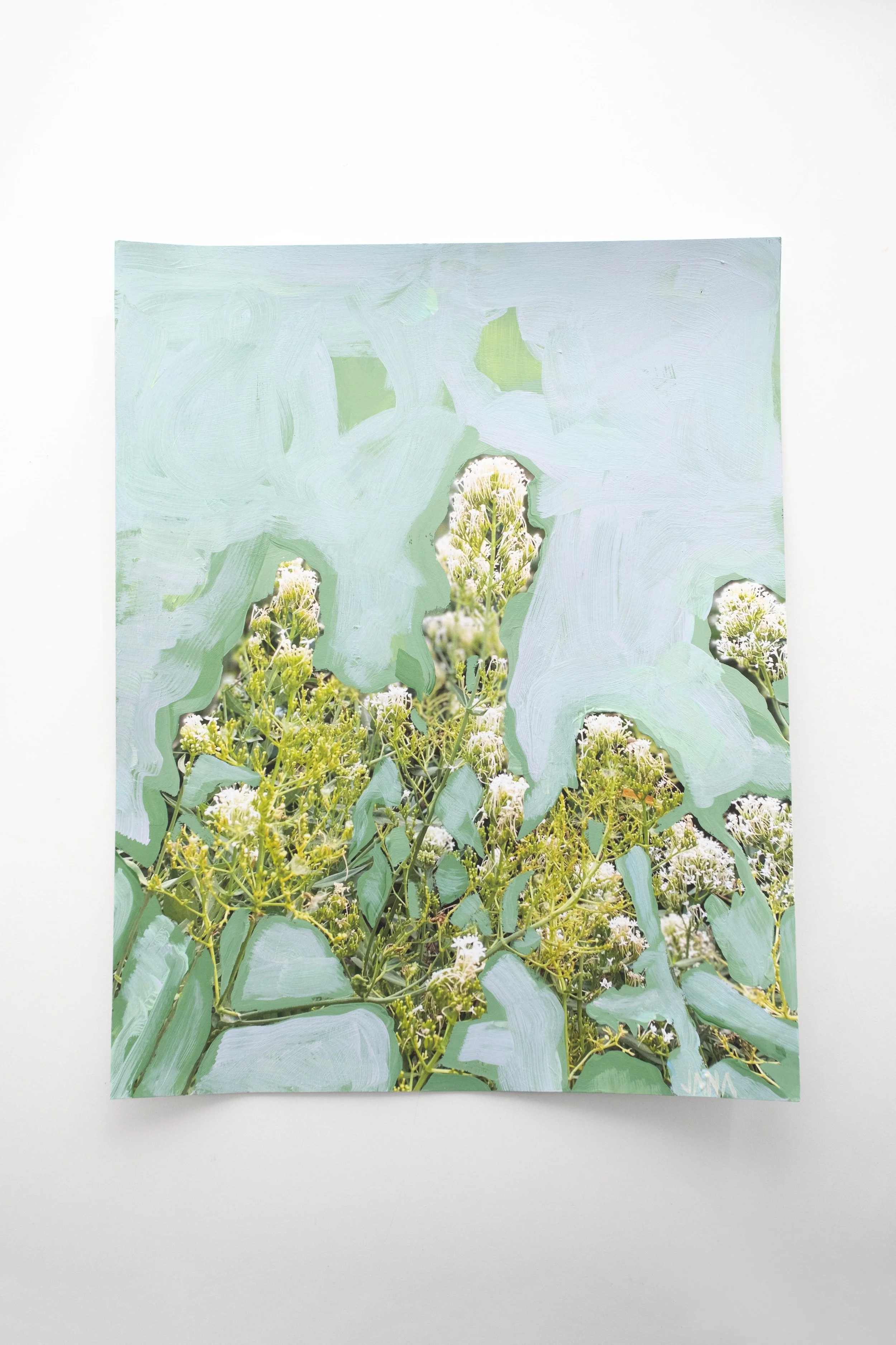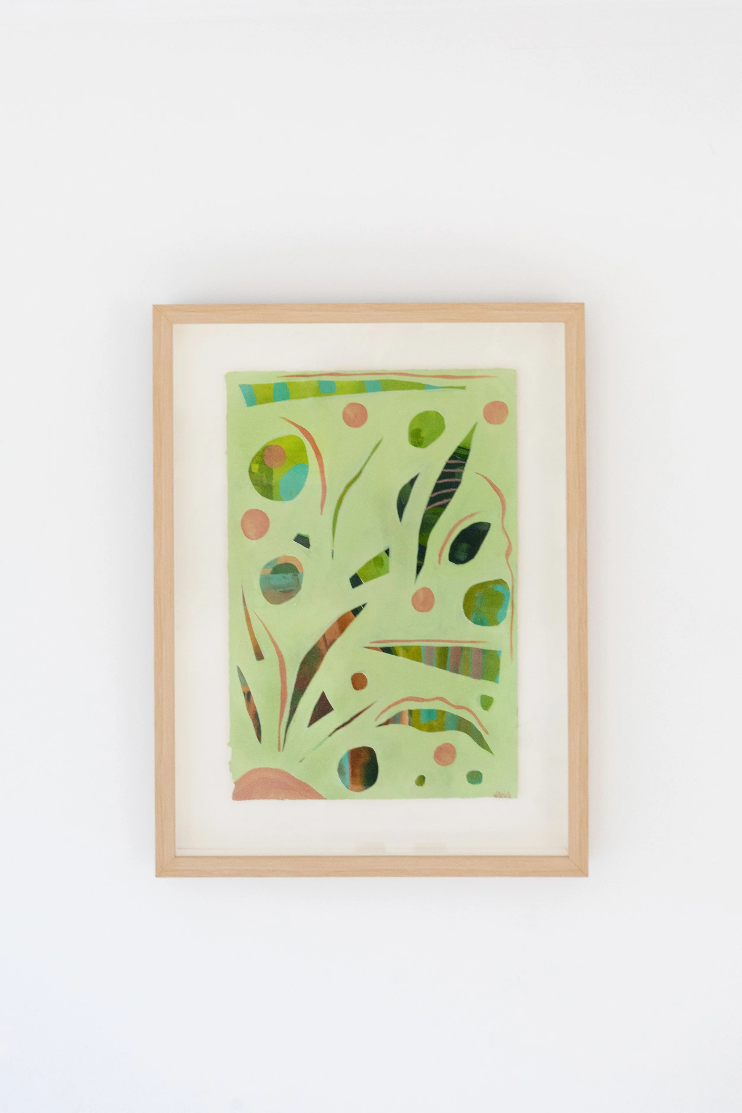 “GREEN THUMB SUMMER” | 40 x 40” + FRAMED | ACRYLIC, INK, + CHARCOAL ON CANVAS | AVAILABLE VIA ACQUISITIONS IN DALLAS, TX