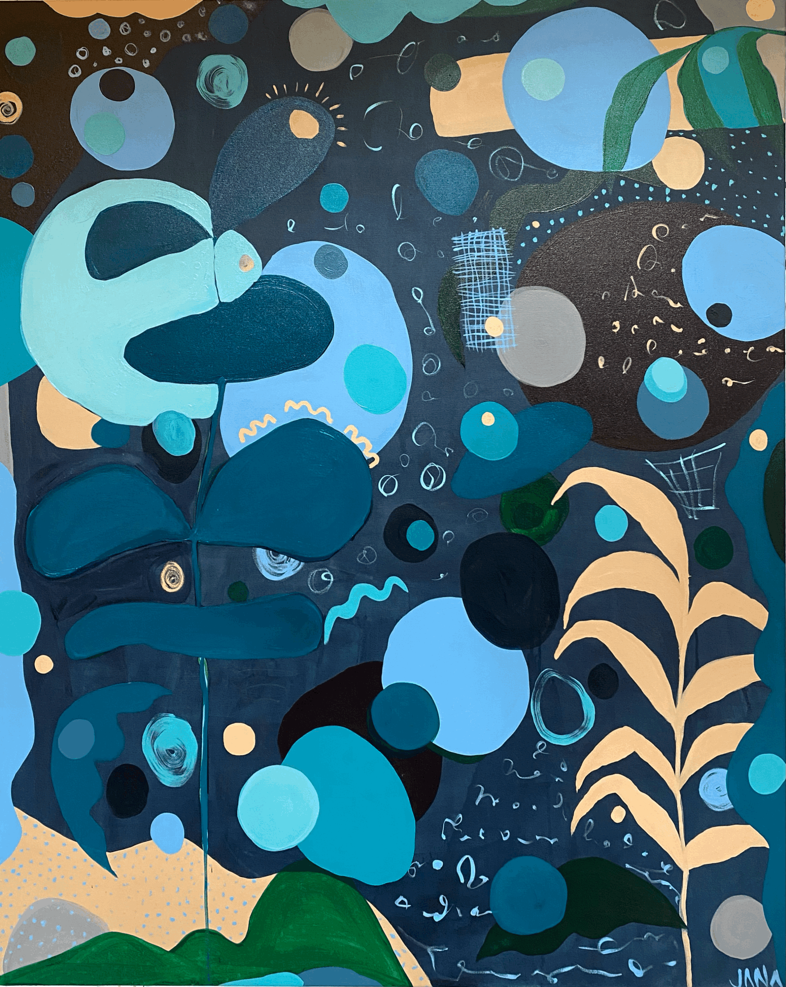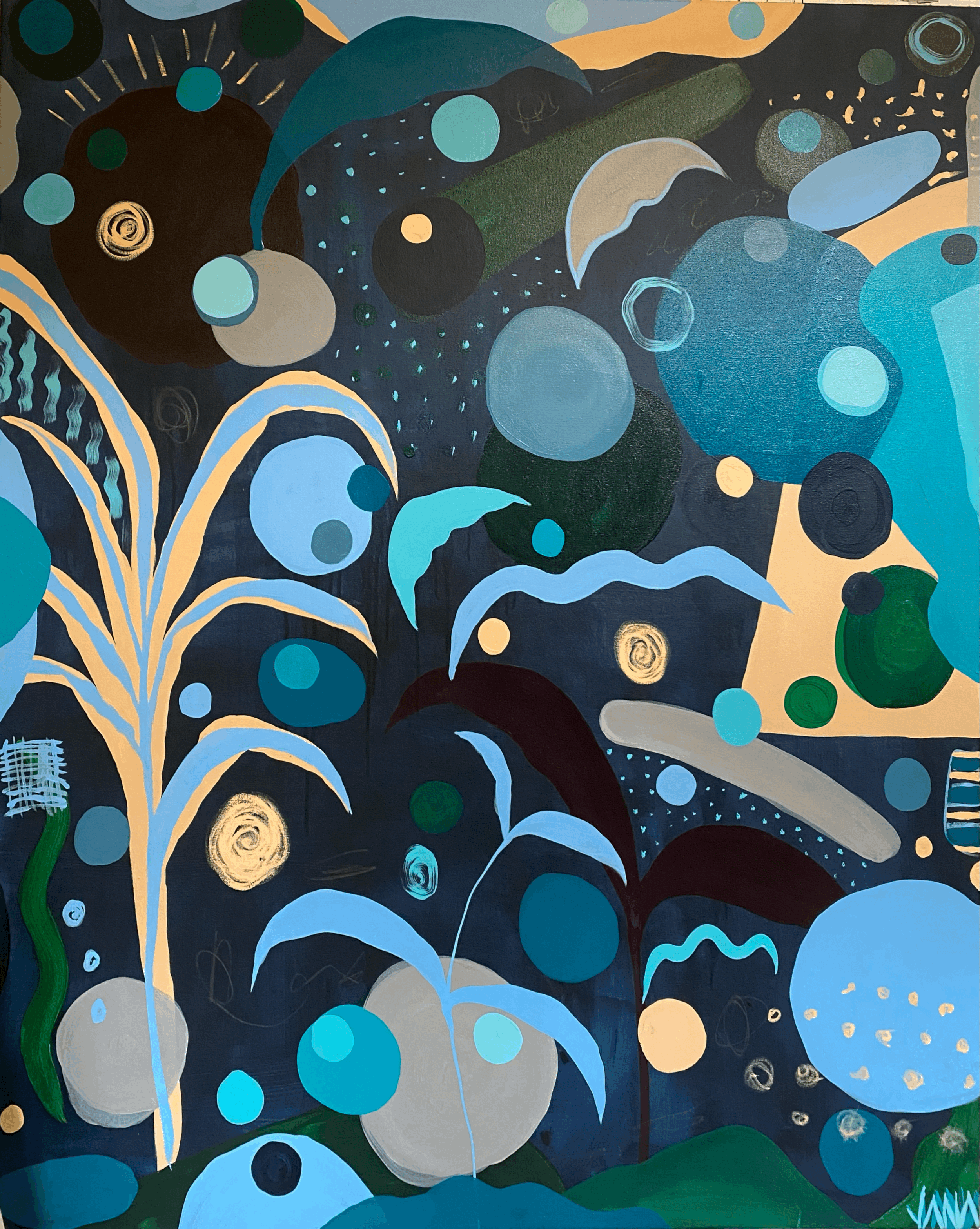“MOONLIT DANCE FLOOR” | ACRYLIC + INK ON CANVAS. FRAMED IN FLOATING WOOD FRAME— AVAILABLE VIA DESIGN SUPPLY IN BIRMINGHAM. CLICK TO BE REDIRECTED.