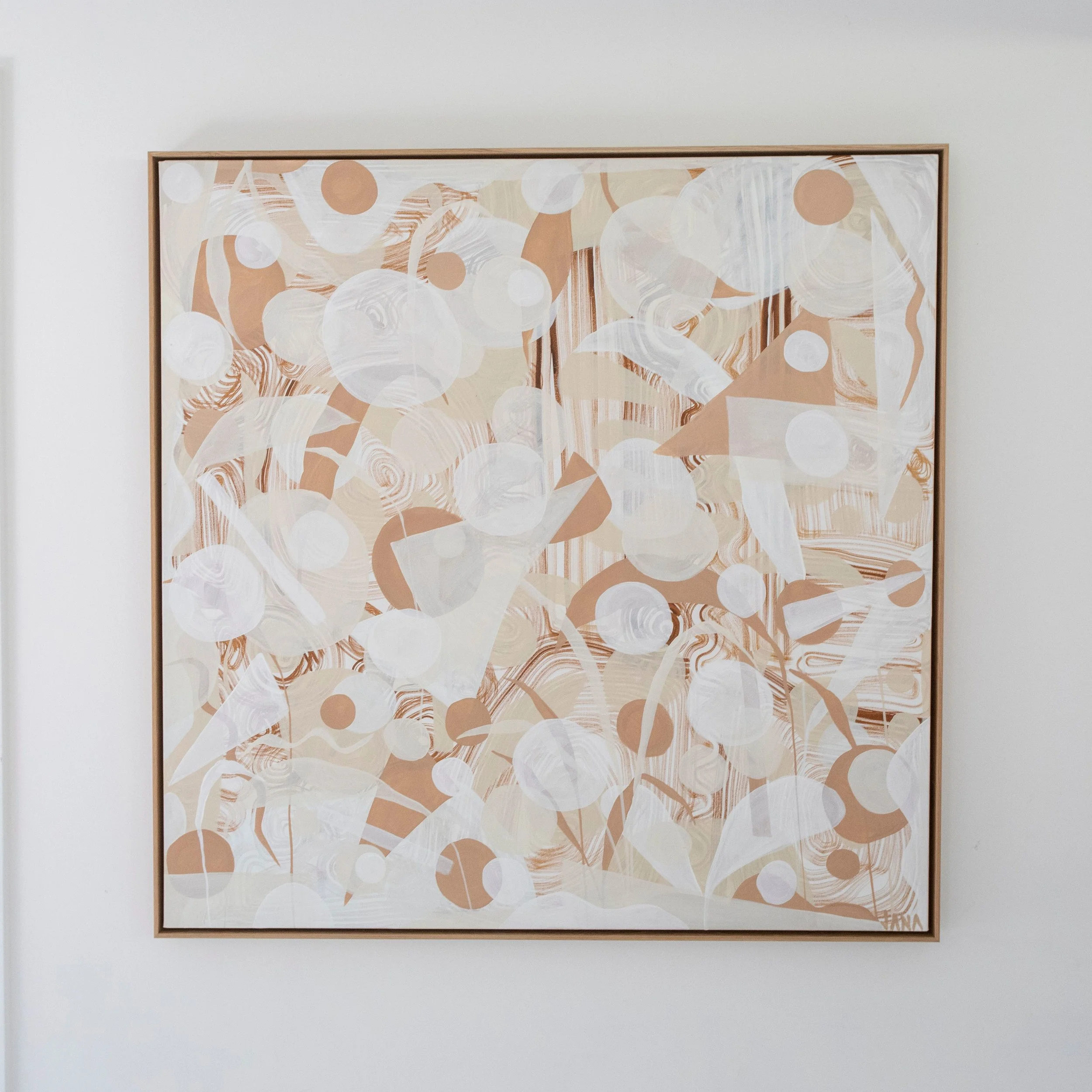 “DO YOU REALIZE” | 49.5 x 49.5”” | ACRYLIC + INK ON CANVAS. FRAMED IN A LIGHT WOOD FLOATING FRAME | AVAILABLE VIA B.D. JEFFRIES